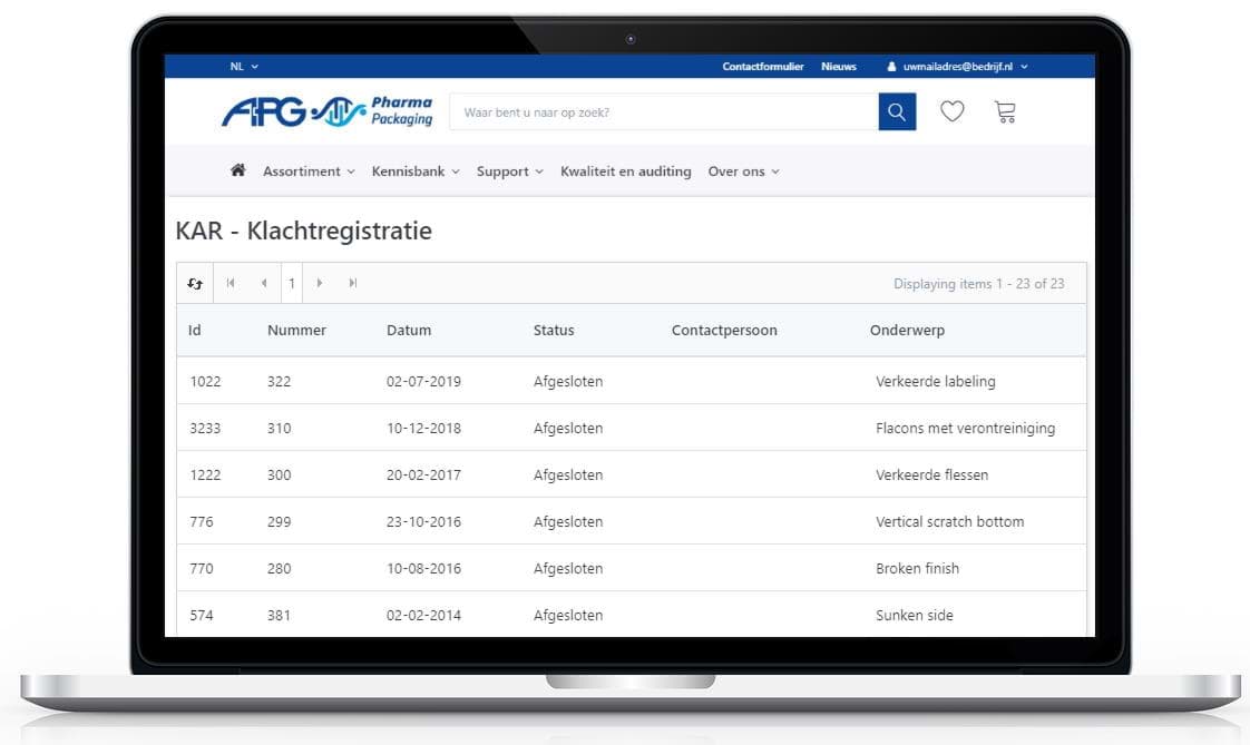 Uw klachtmelding wordt geregistreerd in ons klachtenbehandeling rapportagesysteem. De status van uw klachtmelding kunt u 24/7 inzien onder 'KAR - Klachtregistratie' binnen de Kwaliteit & Doc's module. De voordelen van de KAR zijn: